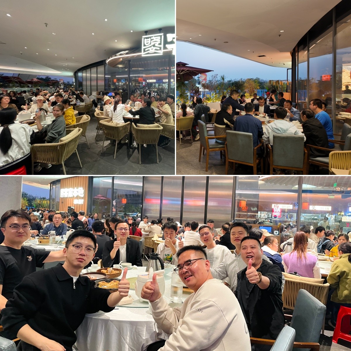 在夕陽(yáng)的余暉下,摩天輪橋箱在128米的高空緩緩升起,360度俯瞰城市壯麗景色與海灣風(fēng)光的連綿波濤,不少小伙伴大有“山登絕頂我為峰”之雄心,這為公司2026的新程再啟拉滿了戰(zhàn)斗氛圍。隨著夜幕降臨,摩天輪之下,一頓豐盛的客家菜為主題美食晚宴為大家補(bǔ)充能量,同事們?cè)谳p松愉悅的氛圍中舉杯暢飲與點(diǎn)贊相慶2025年的成長(zhǎng)與豐收。