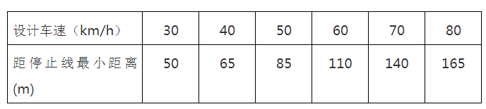 依據(jù):《公路交通安全設(shè)施設(shè)計(jì)規(guī)范》及其設(shè)計(jì)細(xì)則(JTG D81-2017)第3.4;《公路路線設(shè)計(jì)規(guī)范》(JTG D20-2017)第10.1和12.4.2;《道路交通信號(hào)燈設(shè)置與安裝規(guī)范》(GB 14886-2016)第5.1.1.2。
