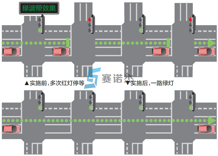 綠波帶的效果受路口幾何條件、路口間距、流量現(xiàn)狀、交通條件及通訊條件等因素的影響。舉個簡單的例子,如果某條道路設(shè)置有綠波帶,可能會吸引更多的車輛進(jìn)入此道路,此時該道路的車流量將發(fā)生變化,而原有的綠波帶設(shè)置可能因此失效。