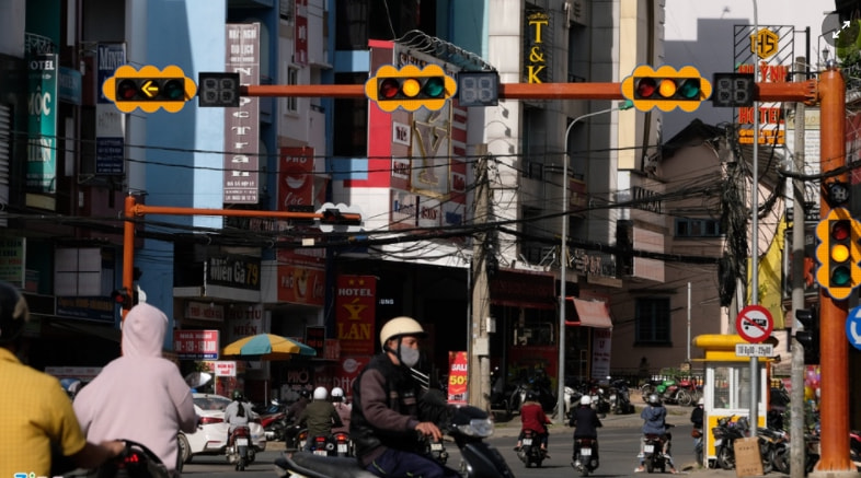 林同省大叻市人民委員會(huì)經(jīng)過多次咨詢專家和群眾,最近在市區(qū)多條道路上安裝了交通信號(hào)燈系統(tǒng)。