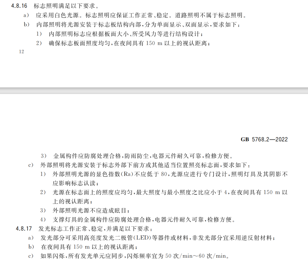 二是基于發(fā)光標(biāo)志特有的“滿足全天候環(huán)境視認(rèn)需求”的性能,保留并特別提出了可根據(jù)地形、日照情況采用,該條款釋義了發(fā)光標(biāo)志的超越性、優(yōu)異性、通用性。