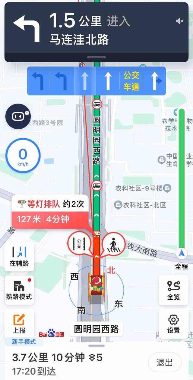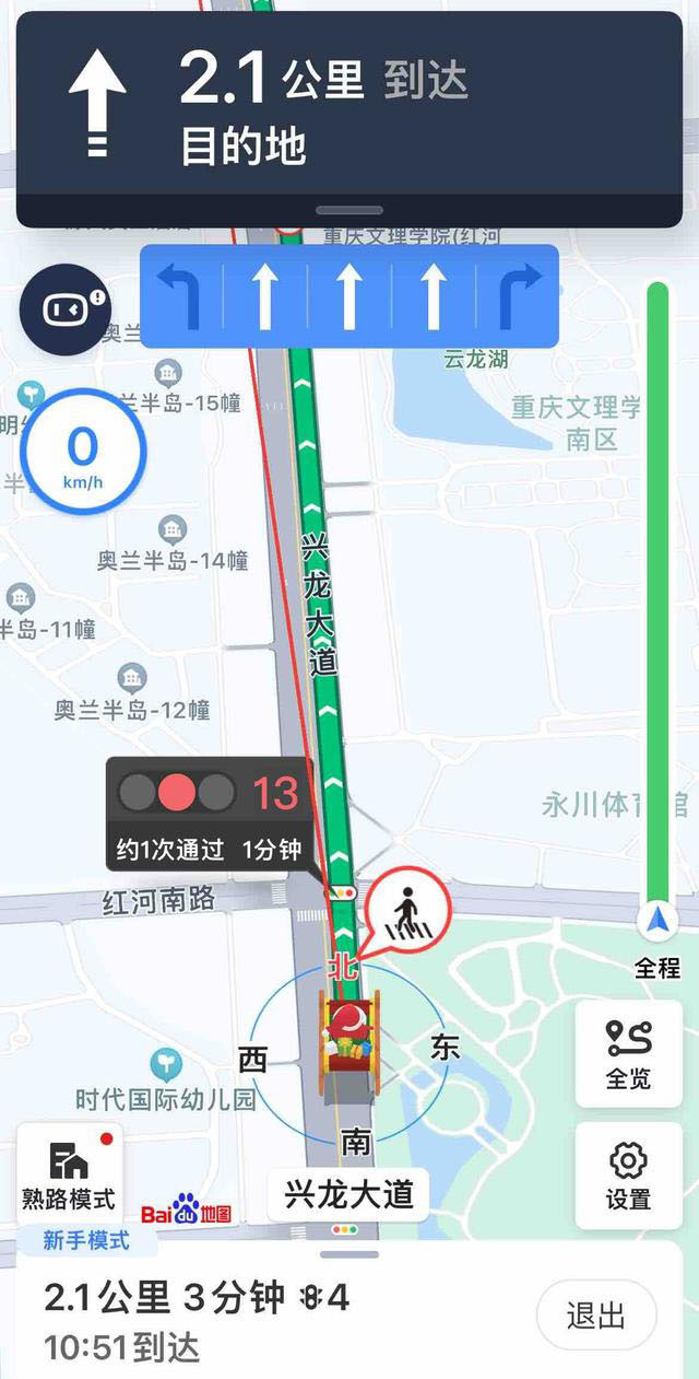 百度地圖還能結合實時路況和當前位置,動態(tài)提示通過前方路口的預估等紅燈次數(shù),緩解因未知而產(chǎn)生的“等紅燈焦慮”。