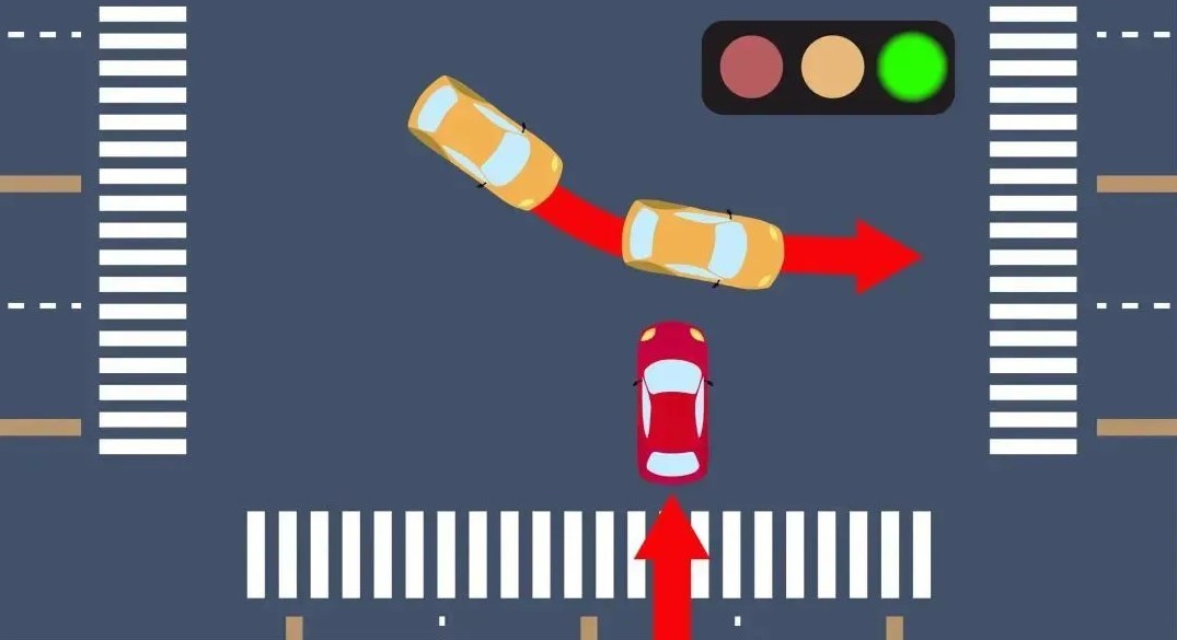 在綠燈情況下,直行車輛未讓行上一個(gè)紅綠燈期間,遺留在路口的左轉(zhuǎn)彎車輛,可能造成轉(zhuǎn)彎車輛滯留擁堵,同樣屬于“闖綠燈”行為。