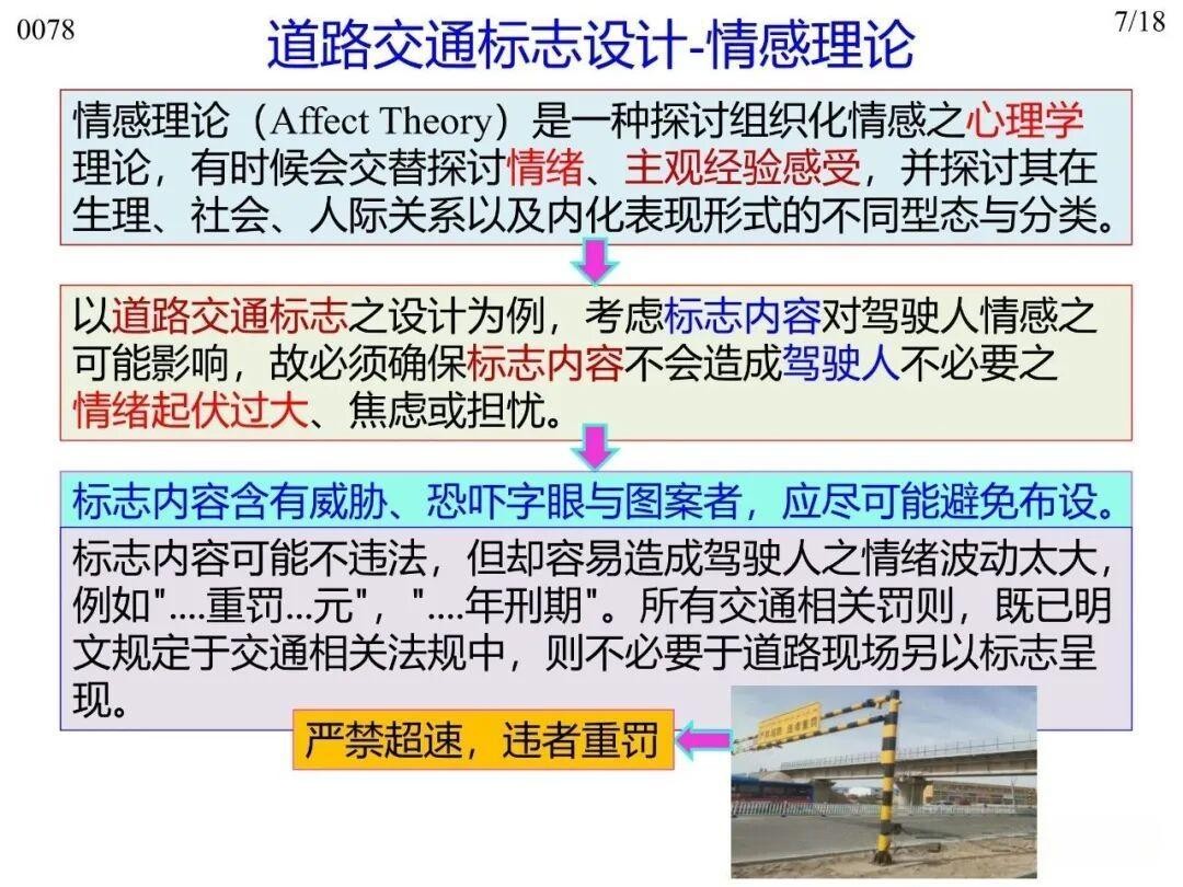 5)情感理論(Affect Theory):考慮標志內(nèi)容對駕駛?cè)饲楦械挠绊?,避免引發(fā)不必要的情緒起伏、焦慮或擔憂;