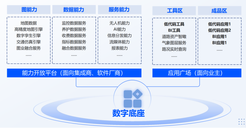 數(shù)字底座以多元數(shù)據(jù)為基礎(chǔ)、開放能力為支撐,不僅服務(wù)于智慧公路,還為其他創(chuàng)新應(yīng)用提供保障,助力行業(yè)數(shù)字化轉(zhuǎn)型。