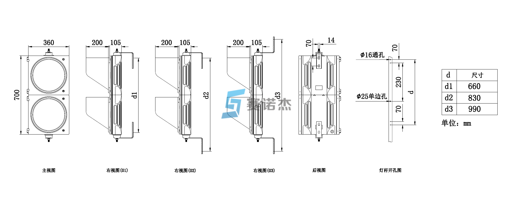 | 安裝支架 | 又稱:L型支架,每套標(biāo)配,安裝于信號燈頂部與底部,連接信號燈與燈桿,放置于包裝箱泡沫頂部 |
