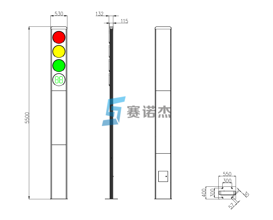 | JD400-3-SW-3YA(T4-YT55) | 5.5m一體化機(jī)動(dòng)車信號(hào)燈,紅、黃、綠滿盤分屏顯示,含獨(dú)立式倒計(jì)時(shí)功能,支持通訊、觸發(fā)、學(xué)習(xí)三種工作模式 |