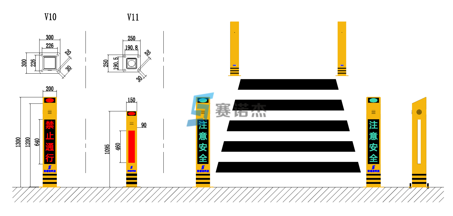 | SW-PCC-V(10) | P10款行人過街語音提示柱,交通黃色,含主機(jī)/從機(jī)各一臺,配對使用,賽諾杰常規(guī)旗艦款,LED顯示屏文字支持客戶端手機(jī)APP自定義修改 |